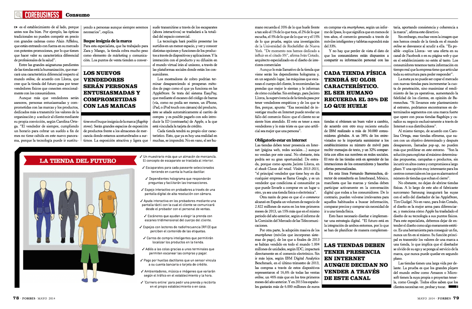 Así será la tienda del futuro según @Forbes_es. Tecnología, espacios para el disfrute y asesores en vez de vendedores http://t.co/3TqXsAKNbR