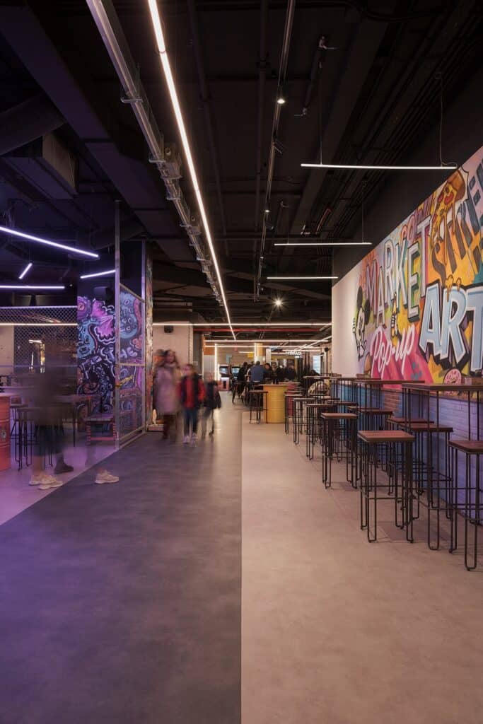 En A Coruña, aterriza Arty! Market con un impresionante proyecto de INteriorismo EStratégico diseñado por el equipo de Iván Cotado. Este espacio, de más de 3.500 m², se configura como una «pequeña ciudad» donde gastronomía, música y espectáculo se fusionan para ofrecer una experiencia inmersiva sin precedentes. Un mercado multiexperiencial que, fiel a su carácter urbano e innovador, marca un antes y un después en el panorama nacional.
